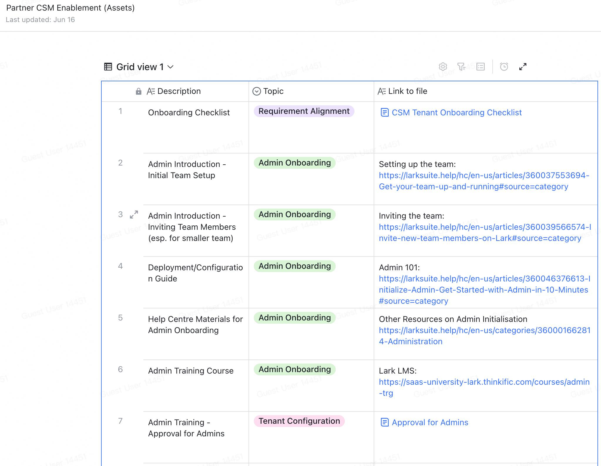 Đây là tài liệu dành cho "Customer Success Manager" - người sẽ đồng hành và chỉ dẫn khách hàng từng bước ứng dụng Lark.
